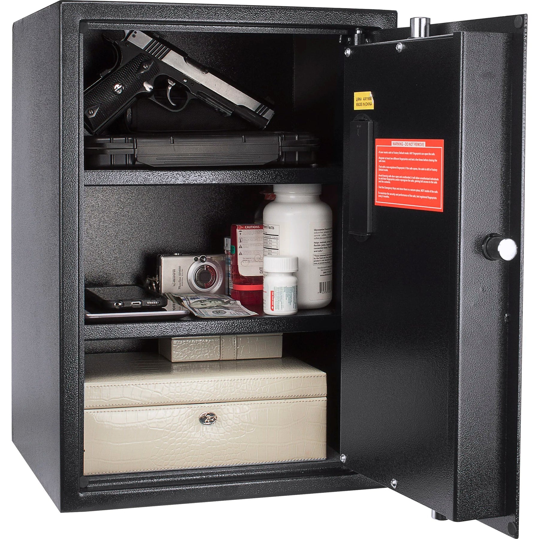 Keep your firearms and valuables safe from theft and accidents with the Barska AX11650 Large Biometric Safe.