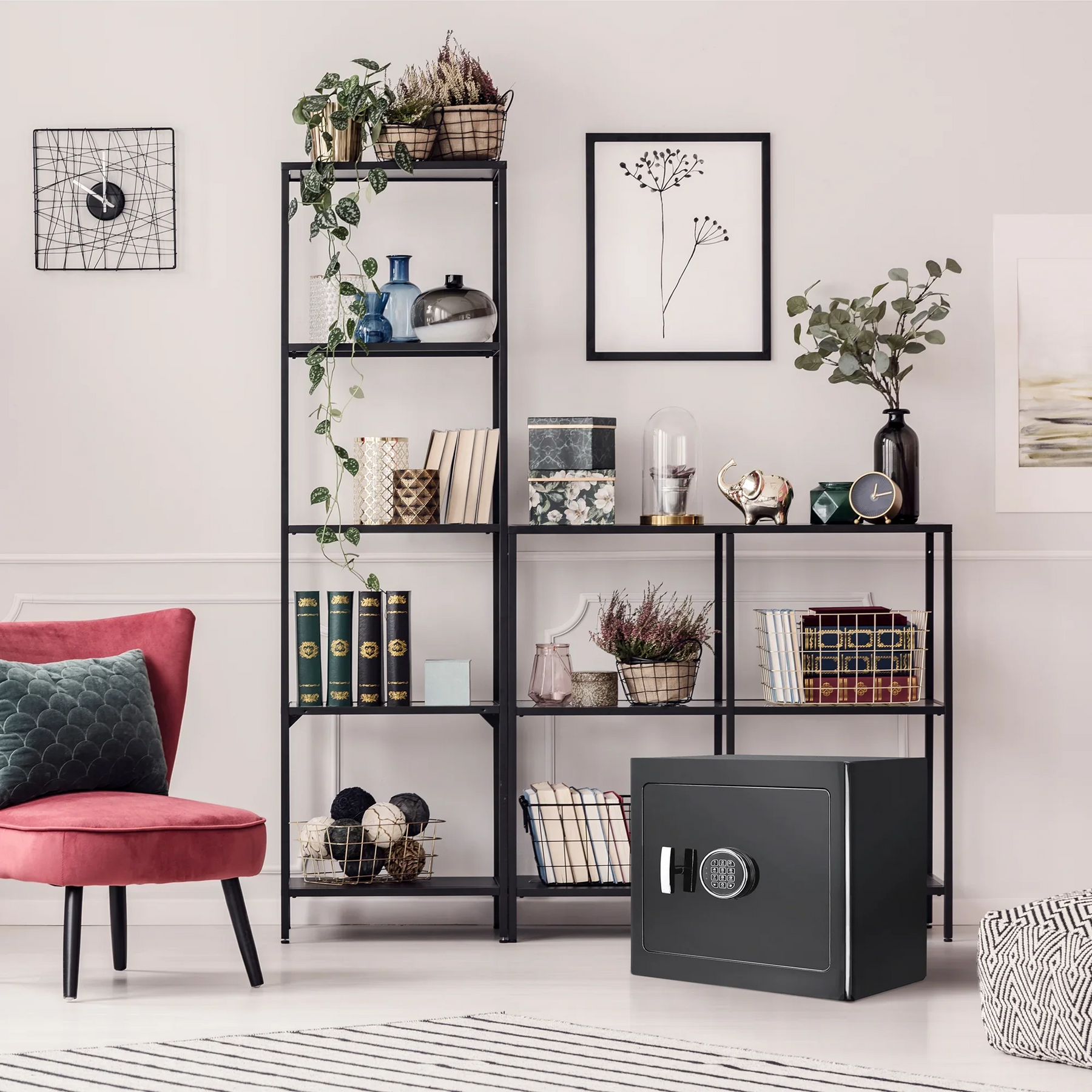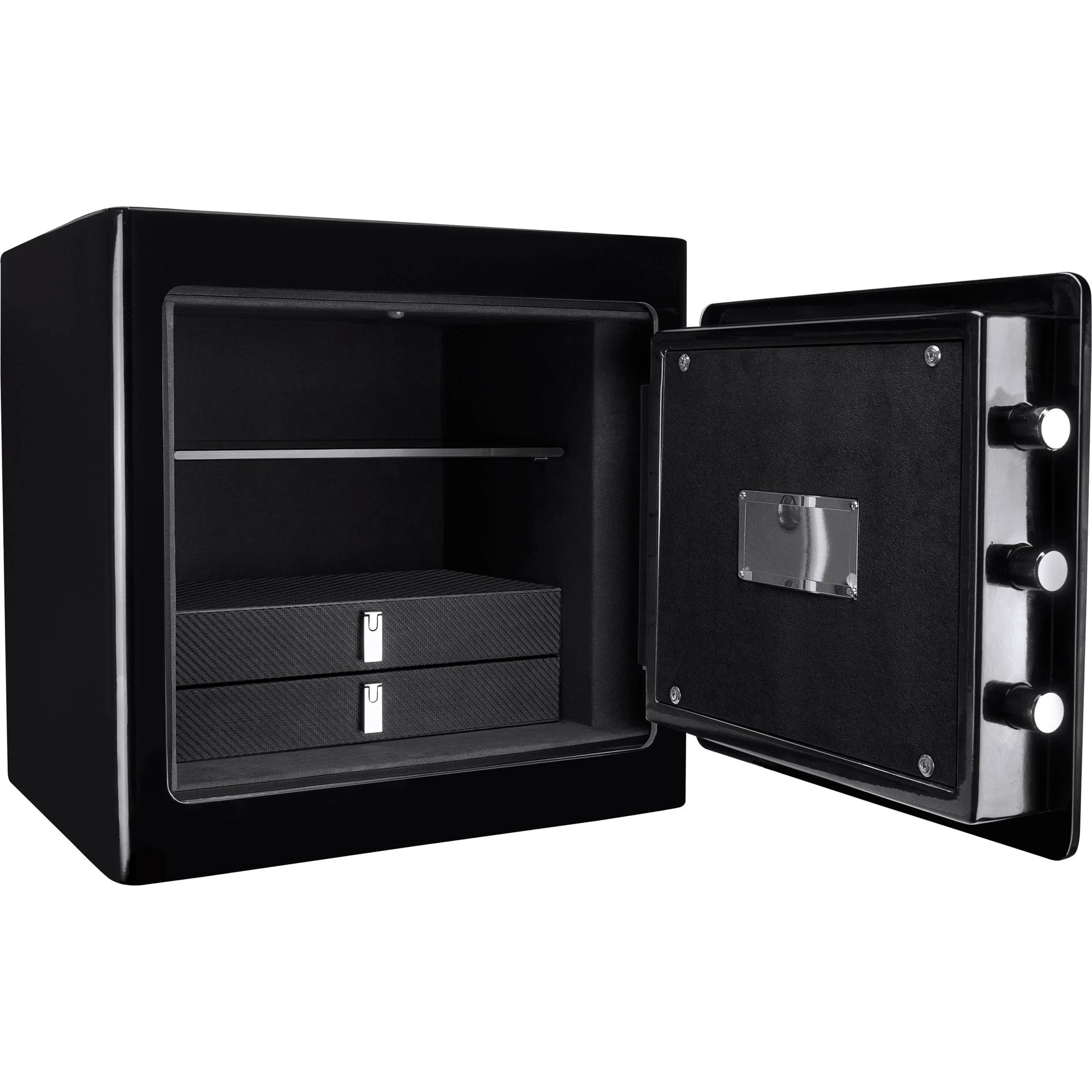Keep valuable jewelry secured and organized with the 1.01 Cu. ft Keypad Fireproof Jewelry Safe by Barska. This attractive safe is constructed from solid steel and has been designed to provide fireproof protection to the valuables inside. Elegant suede-lined drawers keep your jewelry organized while providing additional protection from scratches for your valuables. The Keypad Fireproof Jewelry Safes feature a motion sensor light that is automatically activated each time the safe is opened. A digital keypad retains 2 PIN codes and allows authorized users to quickly access their belongings inside. The Keypad Fireproof Jewelry Safe also comes with 2 back-up keys that can be used to access the safe via the lock located behind the digital keypad.