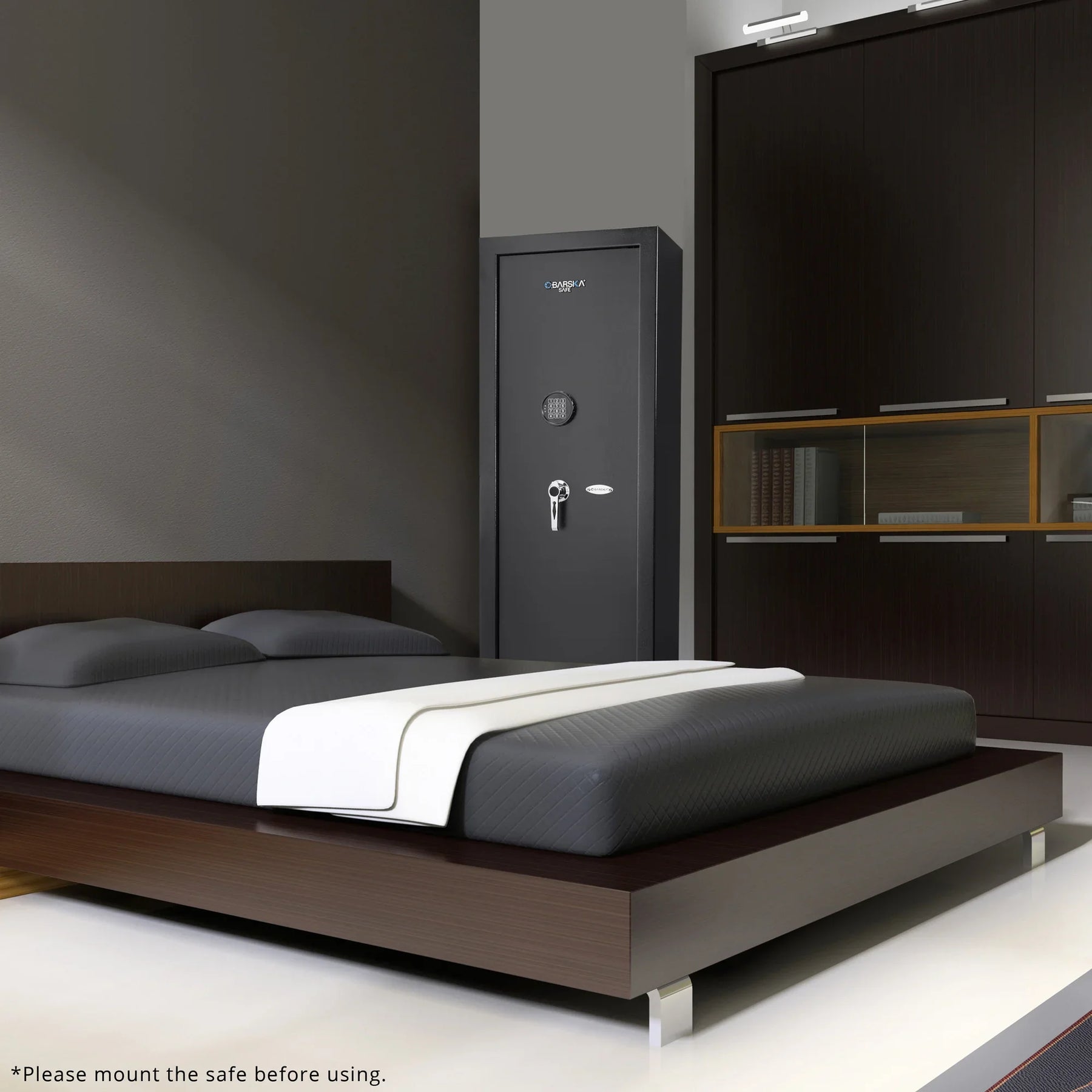 The 7.87 Cu. ft 14 Rifle Digital Keypad Rifle Safe by Barska is a great way to keep rifles and other firearms securely stored while allowing only registered users access to the contents in seconds with a pre-registered PIN Code. Only those who know the digital PIN combination will be able to gain access to the safe. In addition to the digital PIN code module, this safe is secured by a three-point deadbolts and solid steel construction. The Digital Keypad Rifle Safes come with an adjustable rifle rack, shelf, and a 2 Position Handgun Rack.